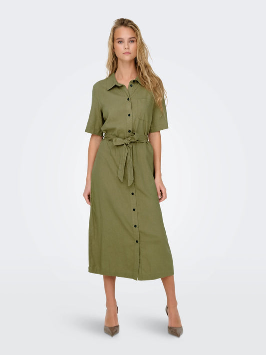 Brenda - Dames bloesjurk met knoopsluiting en tailleceintuur – viscose/linnen – Lente / Zomer