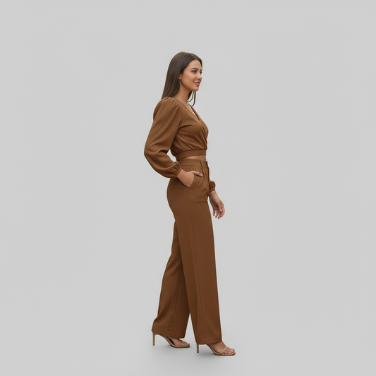 Lynn – Getailleerde Dames Set - Top met Korte Mouw - Pantalon - Polymix - Lente / Zomer