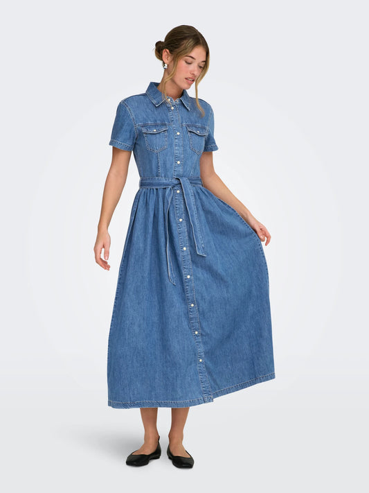 Reeva - Dames denim blousejurk met ceintuur – Katoen – Lente / Zomer