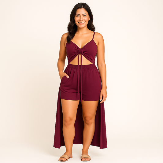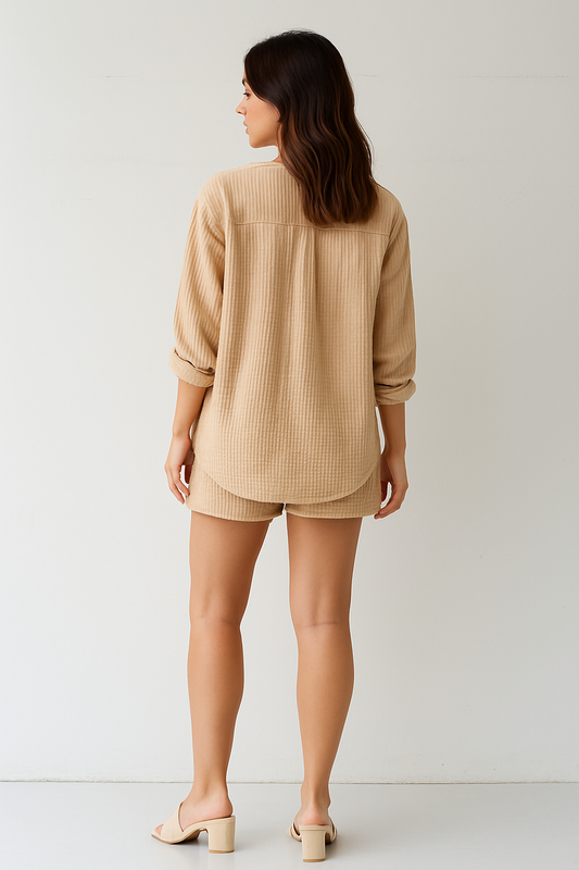 Isabeau – Dames loungewear set met koord en korte top – Polyester – Alle seizoenen